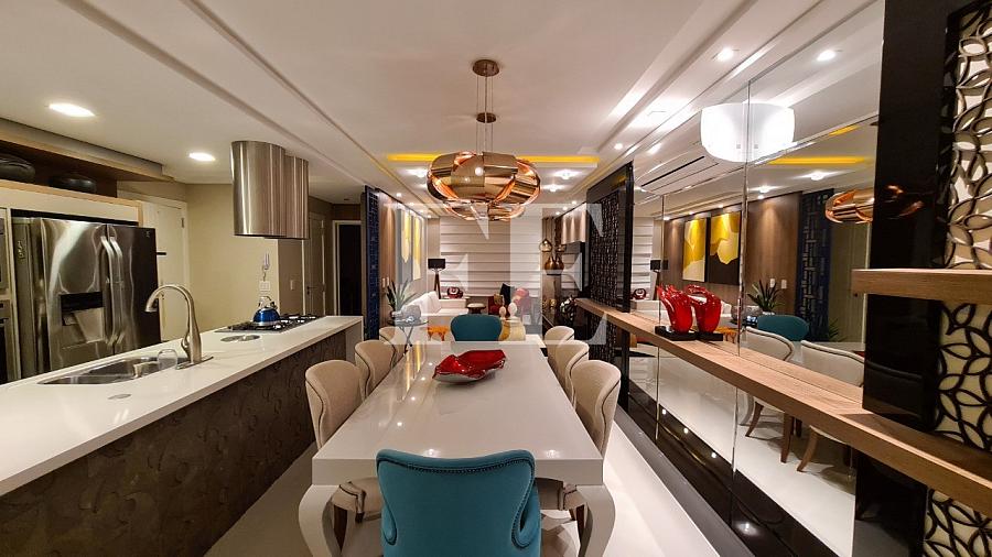 O APARTAMENTO POSSUI 128,00M² DISTRIBUIDOS EM 3 SUÍTES, LAVABO, COZINHA INTEGRADA COM A SALA DE JANTAR