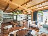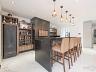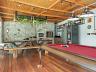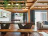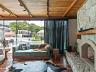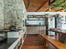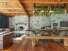 Espaço gourmet externo em estilo rústico sofisticado, com lareira, forno à lenha, forno de pizza, mesa de sinuca e cervejeira.