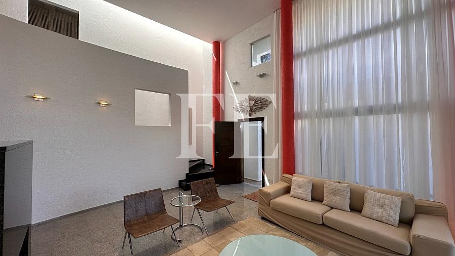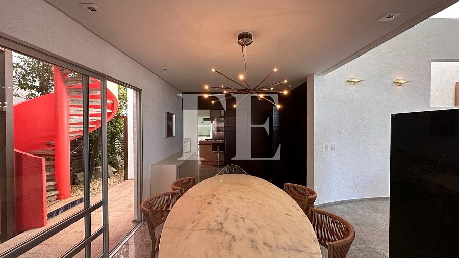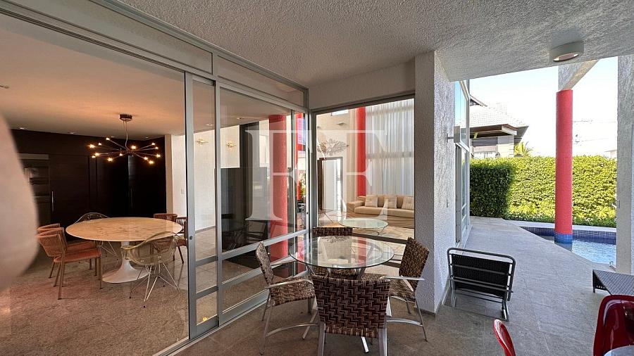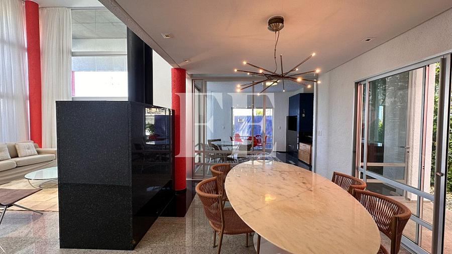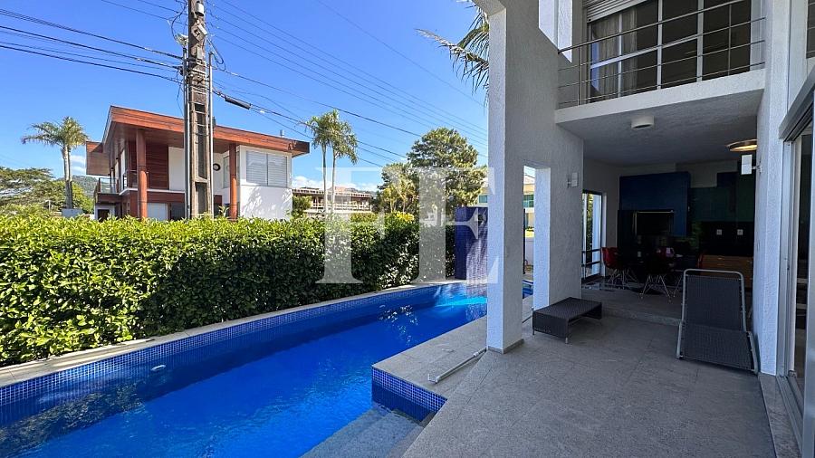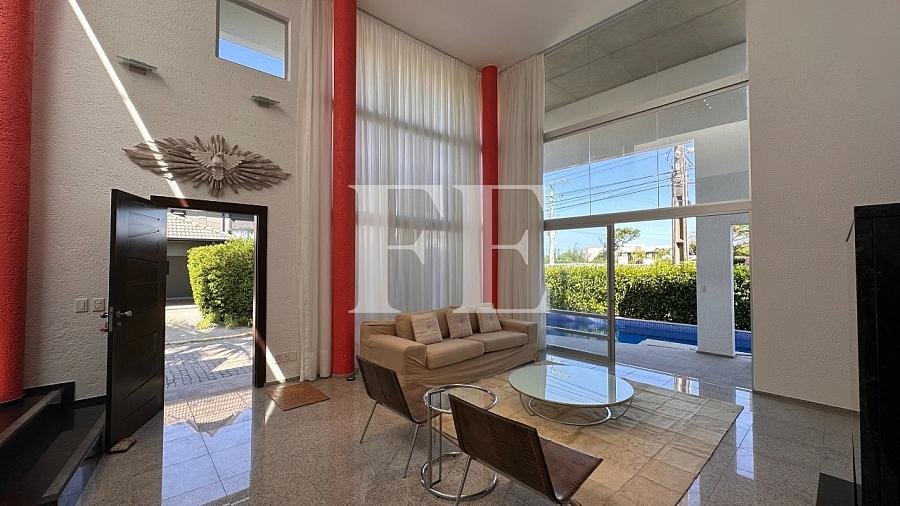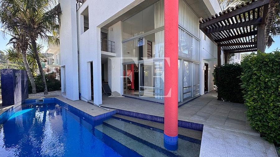 Apenas 50 metros do mar, a casa possui uma piscina, 4 suítes mais dependencia de empregada, possui um living com pé direito alto, lareira, e está semi mobiliada.