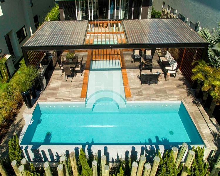 ESPAÇO GOURMET COM FOGÃO INDUSTRIAL, CHURRASQUEIRA, GRELHA, CHURRASQUEIRA AMERICANA, PISCINA COM BORDA INFINITA, DECK RETRÁTIL